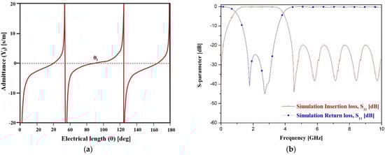 The SIR can be obtained from the response of the electrical length corresponding to the short–loaded stub type, which is shown in Equation (3).