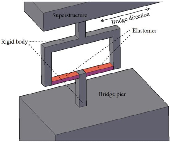 The fundamental principle of the proposed inclinometer is to convert the section rotation into the strain of an elastomer. By utilizing the strain gauges on elastomer, high-precision monitoring of the rotation can be achieved. In this method, bridge pier is used as a reference point, relative to which the beam-end rotation is monitored. The concept of this method is shown in Figure 1, top and bottom rigid bodies are fixed on the pier and superstructure, respectively. The elastomer (red part) is fixed to the two rigid bodies for connection and transfers the section rotation into elastomer bending. The bending strain can then be measured and utilized for rotation sensing.