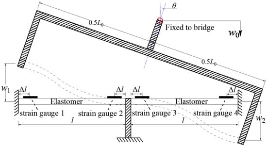Displacement of the top rigid body causes the bending deformation of the two elastomers. On left elastomer, the values of strain gauges 1 and 2 caused by w1 can be expressed as follows: