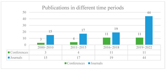 Number of publications investigated in different time periods (from 2000 to 2022).