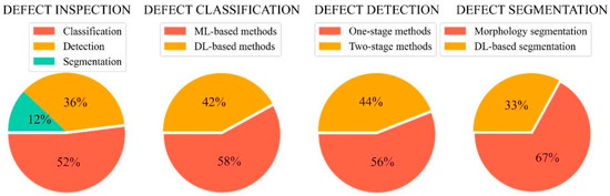 The rest of this survey is divided into four sections. Section 2 presents the methodology used in this survey. Section 3 discusses the image-based defect inspection algorithms that cover classification, detection, and segmentation. Section 4 analyzes the dataset and the evaluation metrics that are used from 2000 onwards. In Section 5, the challenges and future needs are indicated. Conclusions of previous studies and suggestions for future research are provided in Section 6.