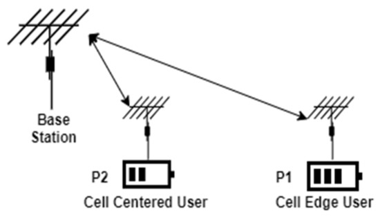 The user at the cell edge is assigned higher power than that of the cell-centered user due to the relative difference in distance from the base station. The received signal can be written as follows [27]: