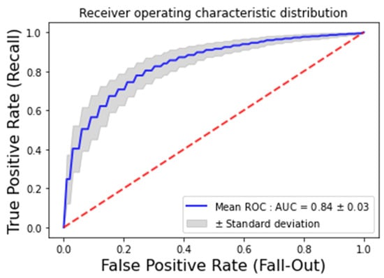 The comparison between selected algorithms was based on metrics such as accuracy and the Area Under Curve (AUC) score, computed from the Receiver Operating Characteristic (ROC) curve. These metrics are only meaningful if the predictions are based on data that the ML algorithms have never learned. Therefore, the dataset was randomly split into two parts. The first part is the “training set”, which consists of 80% of the dataset used to train the ML algorithms. The second part (remaining 20%) is the “test set” used to make the predictions with the trained ML algorithms. The validation of the ML algorithms is performed by n-fold cross-validation []. To minimize the biases associated with the training dataset, 100 different cross-validations were performed on mixed data for each selected ML algorithm. The hyperparameters of the ML algorithms were optimized using the Grid Search method [] that finds the best combination of fixed hyperparameters based on n-fold cross-validation.