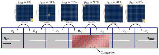 34]. By doing so, the classical traffic measurements such as speed, flow, and density can be replaced with the state estimation of bottleneck probability on a sequence of small segments on a motorway. Thus, using the bottleneck probability as an input to the Q-learning could potentially increase the performance of VSL and allow finer calibration of the VSL system and improve performance.