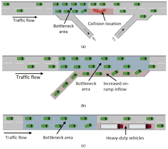 The traffic bottleneck is a phenomenon that can occur in urban and motorway roads. According to Ref. [