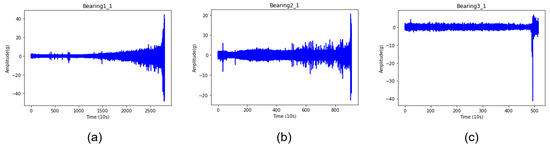 Three datasets are used as the test data required for methodological verification. Each dataset has a tendency, as shown in Figure 9. The detailed explanation is given in Table 3, as each has an individual working condition. Bearing1_1, Bearing2_1, and Bearing3_1 have increasingly complex failure patterns, along with common failure patterns.