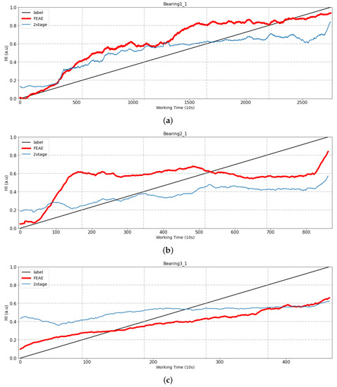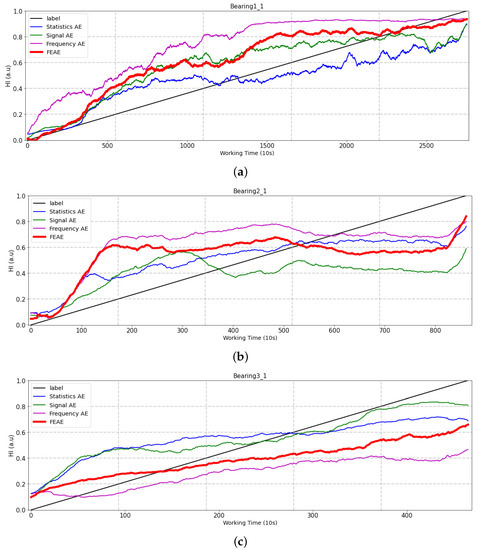 Comprehensively, even though the proposed FEAE did not receive the highest scores in all criteria, it received excellent scores overall. In particular, the proposed model was excellent in the final health indicator and monotonicity, which are the most important indicators of failure diagnosis. Therefore, it can be said that the proposed method shows stable performance in terms of the fault diagnosis algorithm.