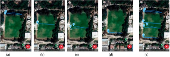 The experiments were carried out on 26 January 2022 at 05:00 PM. The Geo Tracker Mobile application was the software installed on four mobile phone devices (D1–D4) to collect data during the experiment. A smartwatch (D1) was used for data collection among the devices. For scenario 1, the closest and longest distance between the mobile devices and the LoRa Gateway is about 50 m and 90 m, respectively. For scenario 2, the closest and longest distance between the mobile devices and the LoRa Gateway is about 20 m and 50 m, respectively. Table 4 shows the mobile device types, brands, and models. The data collected from the field are stored in a laptop connected to the LoRa gateway for further analysis. The results of the GPS LoRa nodes are visualized using OpenStreetMap.
