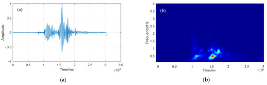 Figure 1. Microseismic waveform and time-frequency diagram. (a) the microseismic waveform diagram; (b) the time-frequency diagram.