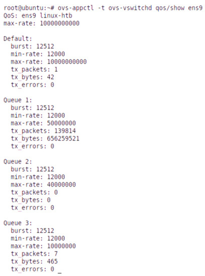 A 6G network should feature a service-based End-to-End (E2E) architecture in which software-defined networking (SDN), network function virtualization (NFV), and network slicing play fundamental roles [6,7]. These technologies introduce significantly higher programmability into the network and allow the creation of multiple logical networks on a shared physical infrastructure. We expect that they provide higher data rates, enhanced spectral and energy efficiency, better coverage, wide bandwidths, extremely high reliability, ultra-low latency, and dynamic QoS management in all network segments. Dynamic QoS management is essential for achieving high flexibility in available network resource usage. However, in most SDN implementations, a required QoS provides statically, by resource reservation, according to the predefined rules in forwarding engines. Packets map into existing queues with different assigned priorities [8]. Therefore, a lack of dynamic queue management (i.e., the creation, modification, and removal of queues) is evident.