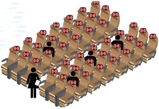 Digitalization provides fundamental tools for state detection and monitoring within the cabin. In addition, interconnection and communication capabilities enable distributed state perception and centralized monitoring and controlling. A digital, fully connected aircraft cabin is the mandatory infrastructure needed to facilitate cabin operations and enable and significantly support effective passenger management [,]. These use cases range from improving the passenger experience, over the optimization of boarding and crew operations, to maintenance planing. This technology begins with a high data rate wireless communication network for connecting different devices in the cabin, such as passenger handheld devices, crew member controlling devices, in-flight entertainment systems or maintenance sensors.