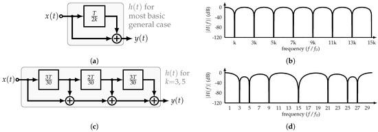 Figure 9a shows a comparison between the basic and band-pass HCFs. If the m-th harmonic is to be bypassed to the output, then the HCF’s impulse response presents m half-sine segments.