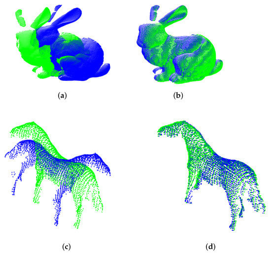 The data presented in this study are openly available in Stanford 3D repository [link https://graphics.stanford.edu/data/3Dscanrep/ (accessed on 15 February 2022)], Statue Model Repository [link https://lgg.epfl.ch/statues_dataset.php (accessed on 15 February 2022)] and Mellado’s dataset in Super4PCS paper [link http://geometry.cs.ucl.ac.uk/projects/2014/super4PCS/ (accessed on 15 February 2022)]. Some data were obtained from Jacopo Aleotti (Horse and Hammer model) and Marcus Forte (UFC and Stockpile dataset) and we cannot make them available.