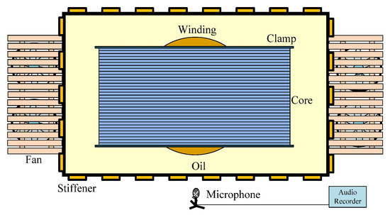 Schematic diagram of acoustic signal acquisition scheme for the transformer.