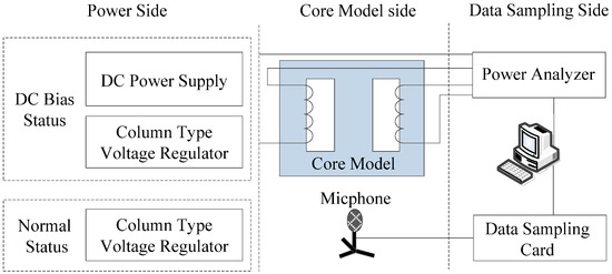 With EHV transmission projects widely used, the number and voltage level of DC transmission lines are growing, and the DC magnetic bias problem caused by AC/DC hybrid transmission is becoming increasingly serious [1,2,3,4]. Transformer DC magnetic bias monitoring is usually carried out by measuring grounding current [5,6,7,8,9], which requires electromagnetic coupling and has weak safety. As a mechanical wave detection method, acoustic signal detection can realize the mechanical state detection of equipment without electromagnetic coupling. This method has been widely used in saturable reactor monitoring [10,11], motor monitoring [12,13], and other fields. During the operation of the transformer, the core, winding, and other structures will vibrate and produce mechanical waves. The generated acoustic signal contains a lot of equipment status information, which can realize transformer DC bias state online monitoring [14,15,16,17].