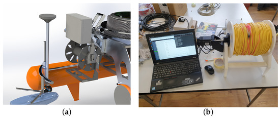 In the development phase of the prototype, all electronics of the TMS are housed in an IP66-rated plastic “control box”. This includes the stepper motor driver, the associated DC /DC converter, an Arduino Uno with its 10 V voltage stabilizer and a BlueRobotics 14.8 V, 18 Ah battery. The box has two cable glands on the side, one for the external power source and USB cable to communicate with the main computer on board the ASV, and one for the cable to power the motor. The power button, motor rotation direction switch and motor speed control potentiometer, all used in the TMS manual control mode, are well sealed to prevent water from entering the control box. To test the performance of the TMS without having to use the ASV, a prototype was developed for use in the laboratory pool, as shown in Figure 15b. It is mounted with the main stepper motor of the TMS, connected to the control box, and was successfully tested.