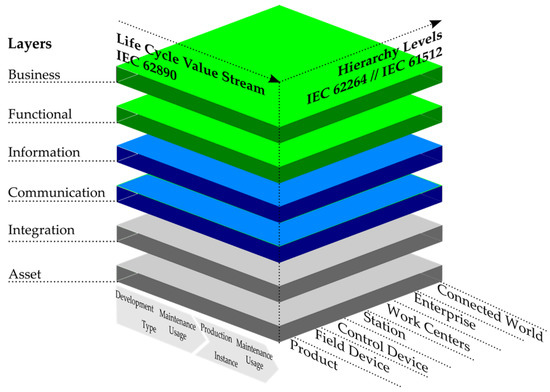 - VDI/VDE Society. Reference Architecture Model Industrie 4.0 (RAMI4.0); VDI/VDE Society: Berlin, Germany, 2015. [Google Scholar]