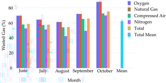 Figure 11 shows the percentage of waste for each gas for each month of recorded data. Since the beginning of recorded data, 62.1% of all gas consumed was waste. This shows the large potential for waste and cost reduction from the automatic brazing process alone. By examining the data as a time series, it is possible to extract exactly when the machine is unproductive. Instead of using monthly consumption totals, it is possible to more accurately calculate what amount of resources should be required to run production.