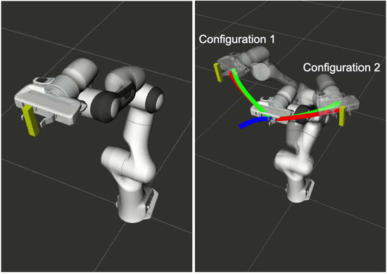 Our algorithm is easily extendable to other kind of manipulators. The only requirement is that we should know the forward kinematics of the manipulator. This would allow us to get the algebraic expressions for functions and in cost function (13) and (14), respectively. In our implementation, we derived the forward kinematics and and through the DH representation of the manipulator. The DH table is available for many commercial manipulators, e.g., UR5e besides the Franka Panda Arm used in our simulation.