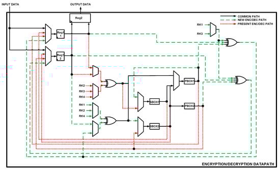 - A hardware architecture for unifying two lightweight encryption/decryption protocols is proposed and implemented.