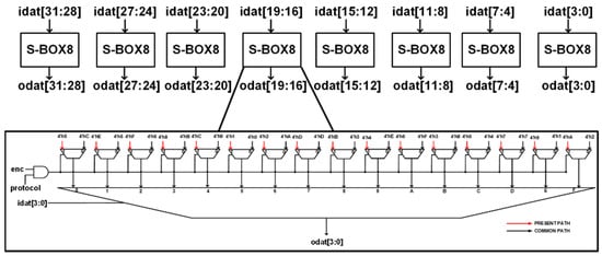 - Gookyi, D.A.N.; Park, S.; Ryoo, K. The Efficient Hardware Design of a New Lightweight Block Cipher. IJCA 2017, 10, 431–440. [Google Scholar]