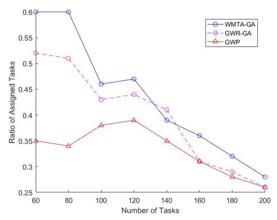 Impact of Varying Number of Tasks on Ratio of Assigned Tasks.