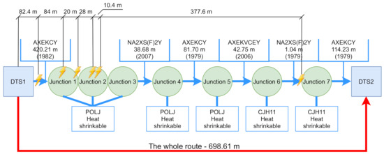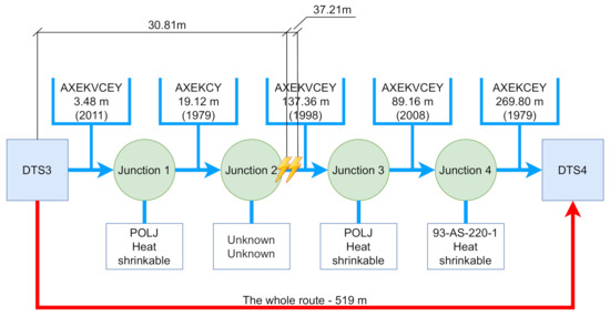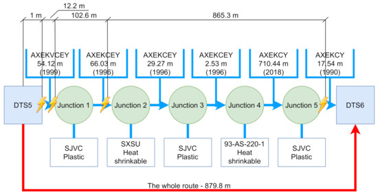 In Table 4, it is possible to clearly compare both measured routes. The table contains an exact description of the topological parameters of the route, which can be found with the GIS tool owned by each utility provider. Data from GIS systems may not always correlate with reality. According to the data, it is not always possible to join two cables with a specific junction. It is therefore necessary to examine the data to see whether they are valid.
