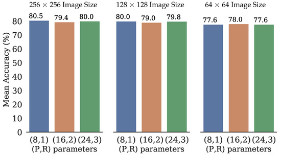 For the classical approach, the operator was used to extract texture features for the three spatial and angular resolution equals , and . The image sizes , and , and the cell sizes of the images , , , and were also tested into this approach. The classification of the resulting texture feature dataframes has been implementing utilizing the SVM. The best three SVM models were those under the configurations / /, //, and //, which reached correspondingly , and of accuracy.