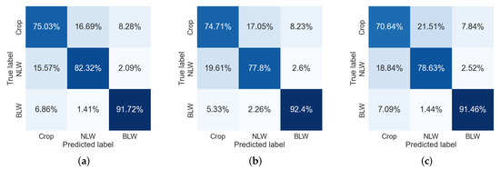 Confusion matrices of the three CNN models. (a) VGG16. (b) VGG19. (c) Xception.