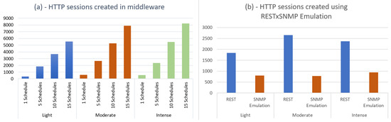 This proposition was evaluated in two different manners. First, we simulate our system using the REST style modified to emulate the SNMP protocol, in such a way to improve the access to network resources, reducing the web data traffic. In this experiment, we were ableto reduce significantly the number of HTTP sessions opened by the Middleware, thanks to the grouping of request demands in single messages (approximately 70% in some network configurations), as well as a decrease in its number of access operations (approximately 66% in some network configurations) and resources served/consumed (approximately 66% in some network configurations, which represents a significant reduction of the Middleware workload).