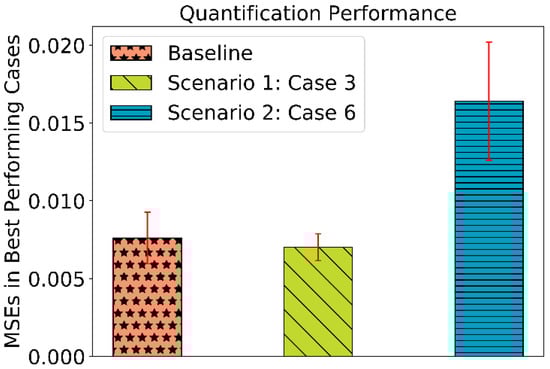 MSEs in quantification performance obtained in baseline and best performing cases in both the scenarios, viz., scenario 1: case 3 and scenario 2: case 6.
