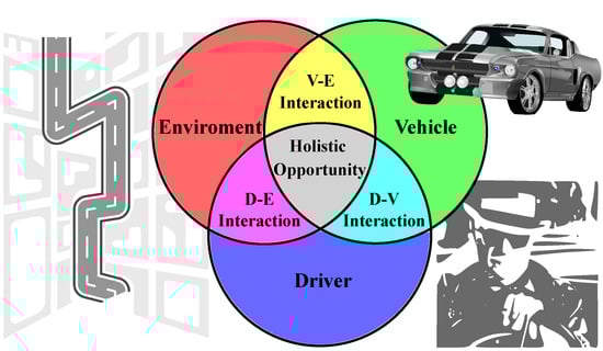 In this sense, the design of current ADAS has a variety of potential difficulties: reflecting the effects of all kinds of traffic factors on driving safety; describing the interactions between the characteristics of the driver’s behavior, the state of the vehicle, and the road environment; or providing an accurate basis for vehicle control. Existing systems that assess driving safety may not work properly if they consider only a limited number of factors and their interactions. Driving is a complex decision-making process due to the intricate relationships between the main elements (vehicle, environment, and driver) and the dynamic nature of these elements. In the driver–vehicle–road closed-loop system, the driver is a crucial component, with unique driving characteristics that vary from driver to driver or even for the same driver under different conditions or on different days.