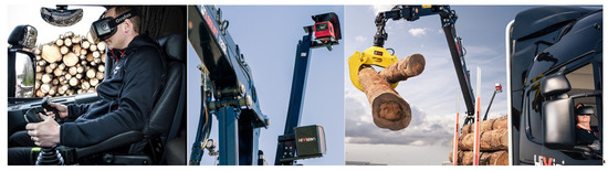 Automated and assisting systems combined with a variety of modern sensors increase the productivity and quality of forest work. Even if we are far from using the full potential of smart technology in forest machines, the operator is already receiving a large amount of information compared to traditional machines. In addition, forestry machines are also increasingly networked with each other (e.g., harvesters and forwarders) and also have possibilities to retrieve or exchange information from the Internet. On the one hand, this abundance of data helps to train autonomous, automatic, or assisting processes; but on the other hand, it leads to a challenge in mediating the information to the operator. However, in addition to many of the benefits of “big data”, negative effects can also occur in the form of divided attention, information overload, and operator stress. A further increase in the information burden on the operator can potentially lead to higher chances of human errors that could harm not only the operator, but also people, machines, and objects in the neighborhood of the machine [129,130,131]. Augmented reality can help to provide the information better and more efficiently to the machine operator. Augmented reality, which matches data generated by sensors and algorithms with the user’s actual perception of the environment, can improve the operator’s awareness of the machine, the environment, and the specific work progress. Sitompul and Wallmyr (2019) [129] defined for forest applications that augmented information could be provided for two types of operation: in-cabin operation and remote operation. Traditionally, heavy machines, such as forestry machines, are operated in the cab. In recent years, there have been repeated efforts and studies to move the operator from working in the cab to working in a remote control station, which is called teleoperation. With regard to cab work, Kymäläinen et al. (2017) [132] and Aromaa et al. (2020) [133] have proposed to show technically related visual obstacles of the forestry machine (e.g., crane) transparently on a display.