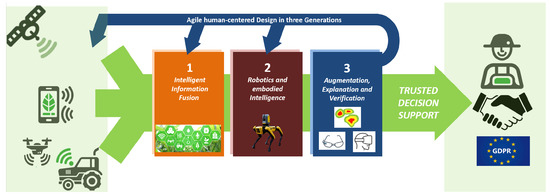 In addition, integrating a human-in-the-loop (expert-in-the-loop) has many other advantages: Human experts excel at certain tasks by thinking multimodally and embedding new information in a conceptual knowledge space shaped by individual experience and prior knowledge. Farmers and foresters can build on an enormous amount of prior knowledge. Our guiding principle, therefore, is that using conceptual knowledge as a guiding model of reality can help develop more robust, interpretable, and less biased AI models [17]. This can (a) provide advanced contributions to the international research community, (b) find new applications in various AI solutions, and (c) help add value to real-world applications, especially in areas that impact human life (agriculture, forestry, climate, health).