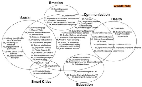 Papers were excluded if they did not report a design of an empathic system or machine. The majority of the excluded articles presented human–human interactions, such as interactions between designers and users [27,28,29,30,31,32,33,34,35,36,37], and between medical crowdfunding beneficiaries and contributors [38], and others did not report an empathic system.