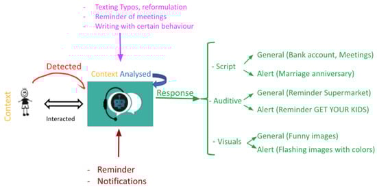 - Modify/Use New Behaviour TechniquesThe empathic system should be environmentally and socially aware of the situation of the user. Thus, using new behaviour techniques is a must. Interruptions, notifications, and warnings are important factors that can be used in an empathic system.