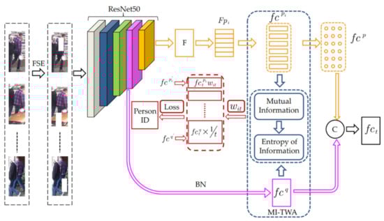 - MI–TWA module is added to the improved ResNet-50 network [15], which is integrated with global features of equal weight to help reduce the impact of the occluded parts.