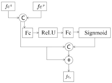 Based on the feature map channel attention mechanism, we designed a feature fusion network [15]. The network structure is shown in Figure 2. The global and partial features are inputs. After cascading, the bottleneck mechanism is used to build a channel attention mechanism to promote interactions between different features and information exchange. At the same time, the residual structure is used to accelerate and stabilize convergence so that, finally, the frame-level feature is obtained.