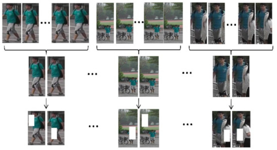 This article focuses on video-based pedestrian re-identification. With the widespread application of deep learning, Recurrent Neural Network (RNN) has also been applied to aggregate image-level features into sequence-level features for video-based person re-identification [8,9,10,11]. Some researchers also use optical flow to build spatiotemporal models with two-stream networks [12]. All these methods significantly improve the performance of video-based person re-identification. However, feature learning of deep learning requires a large number of samples to train the model, so it is easy to overfit on the dataset. Significant appearance variations due to camera viewpoint, background clutter, and especially, partial occlusion [13] can also occur when using this method. The performance of video-based person re-ID usually deteriorates severely under partial occlusion. This problem is difficult to solve because any part of a person may be occluded by other persons and environmental objects, such as bicycles and indicators. Attention mechanisms have been introduced into video-based person re-ID to handle partial occlusion [14]. They select discriminative frames from video sequences and generate informative video representations. While these methods have some tolerance for partial occlusion, discarding occluded frames is not ideal.
