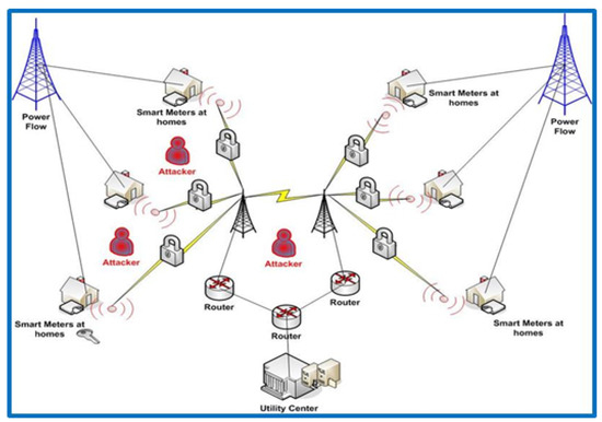 The rapid rise of information and communication technology (ICT) has changed not only modern society, but also the automation system in industries, including the electric power system, to a more convenient and dependable system. Electric power system reliability is one of our society’s most basic necessities, and in today’s technologically oriented world, an efficient and dependable electric power system is heavily reliant on ICT [1,2]. In recent years, there has been a lot of interest in upgrading traditional power systems to smart grid systems, which has boosted the integration of power systems with ICTs to ensure a dependable system that can overcome the issues that traditional power systems face. Increased consumption is one of the issues, as is the incorporation of cutting-edge technologies into power networks, such as renewable energy generation, electric vehicle charging, and smart meters. The ever-increasing reliance on electricity, as well as the demand for high-quality power, have necessitated smarter power delivery, more accessible pricing, and faster power restoration [3].