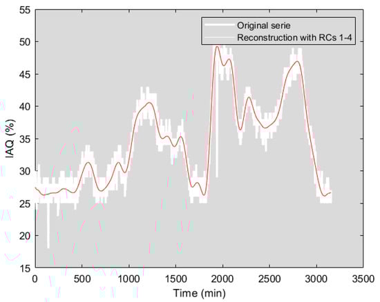 IAQ time series (without disturbances) reconstruction with L = 250 and four dominant eigenvalues.