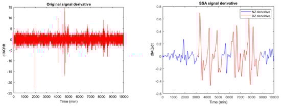 Original (left) and SSA processed temporal derivative (dIAQ/dt) signal (right).