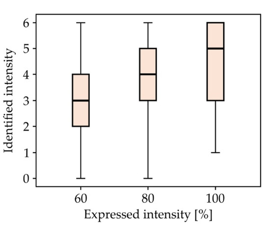 - Hoffmann, H.; Kessler, H.; Eppel, T.; Rukavina, S.; Traue, H.C. Expression intensity, gender and facial emotion recognition: Women recognize only subtle facial emotions better than men. Acta Psychol. 2010, 135, 278–283. [Google Scholar] [CrossRef] [PubMed]