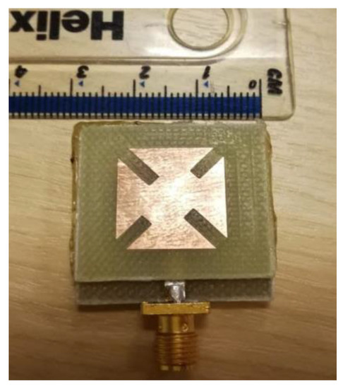 Prototype of the proposed single-element circularly polarized microstrip antenna.