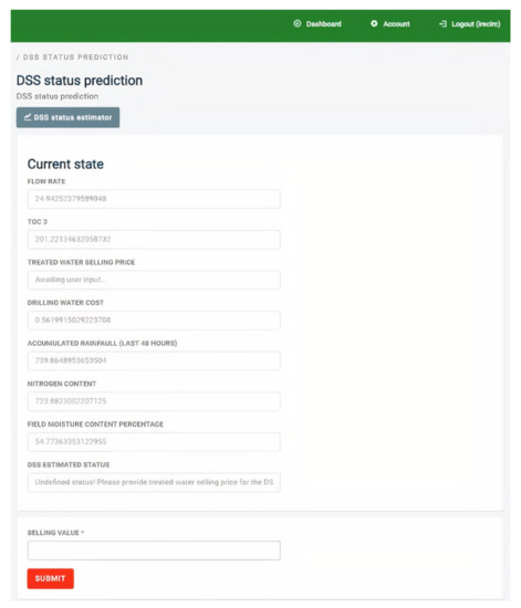 For the prototype of the water quality prediction module, as this is exposed to the end user under a prototypical implementation of the DSS’ GUI, see Figure 4.