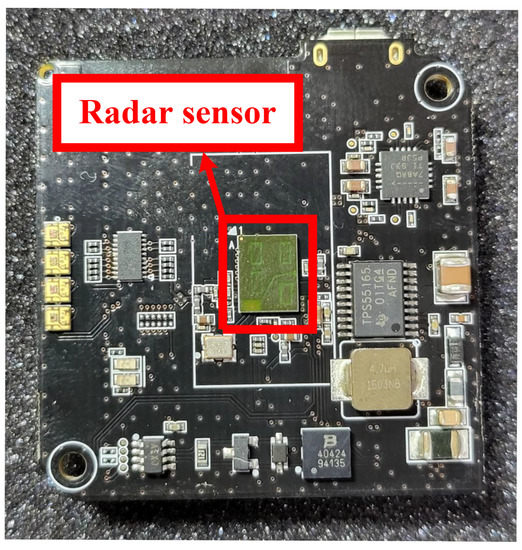 To verify the vital signal measurement function of the proposed CWT processor, Infineon’s BGT60TR13C frequency modulated continuous wave (FMCW) radar sensor with a center frequency of 60 GHz was used [41], as shown in Figure 11. The FMCW radar signal was irradiated to the subject’s chest to acquire Doppler shifts of the chest due to heartbeat and respiration. Table 3 shows the main parameters of the FMCW radar sensor.