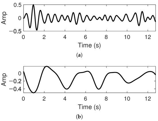 The vital signals for the verification of the proposed CWT processor: (a) heartbeat; (b) respiration.