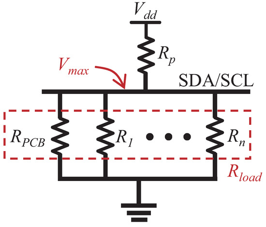 where is the maximum resistance recommended by the IC standard, refers to the equivalent conductance of the sensor IC i, is the resistance of PCB, and n is the number of sensor ICs on the bus. According to Equation (1), we also observe that the maximum decreases along with the increase of the number of connected chips.