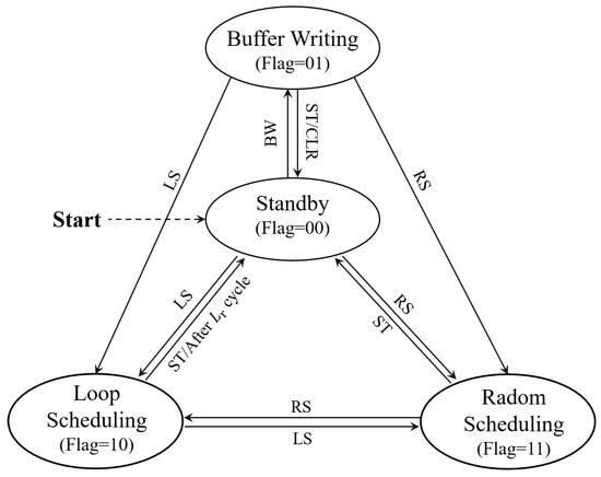 Finally, in order to further improve the task efficiency, the generated bus signal will not be directly used for sensor control but first sent to the state machine for management, which buffers the common data and removes data redundancy to minimize the required amount of data transmission in the wireless channel. Such progress is discussed in detail in Section 5.