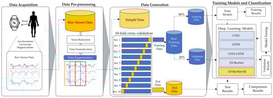 Annotated data from complicated hand-based movements recorded by smartwatches are utilized as a baseline for complex hand movement studies in the two datasets above [73,74,75]. UT-Complex [70], PAMAP2 [76], and OPPORTUNITY [77] are further sensor-based activity datasets. On the other hand, this research did not include data from an annotated smartwatch sensor for sophisticated hand-based tasks.